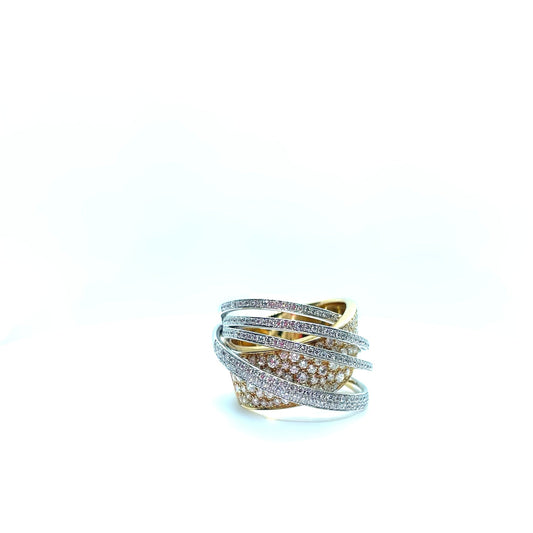 Anello fascia in oro bianco e giallo , brillanti Giorgio Visconti A16513
