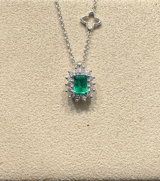 RECARLO DECO' CROSS NECKLACE IN WHITE GOLD, DIAMONDS AND EMERALDS P10CR846/SM-45