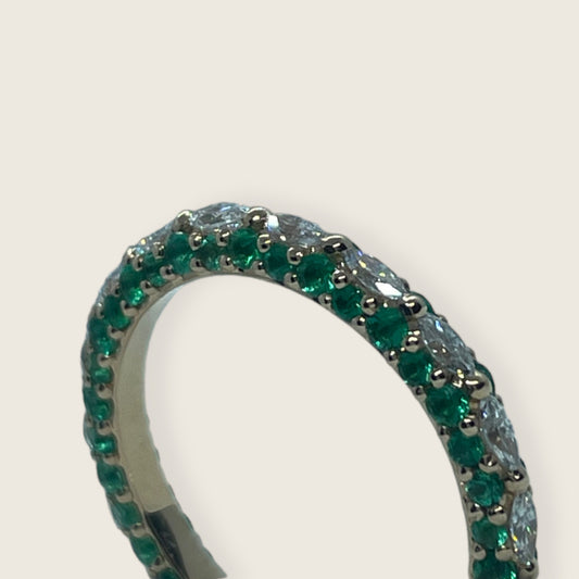 Anello a fascia in oro con diamanti e smeraldi Crivelli