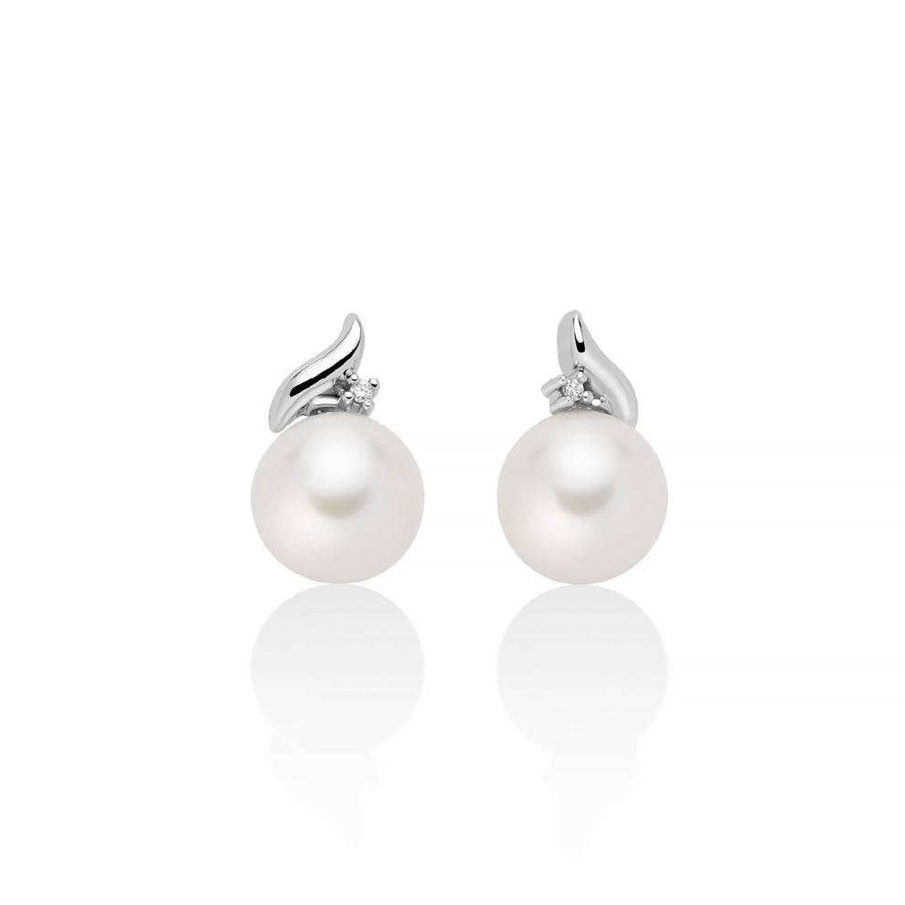 Orecchini a lobo della collezione Miluna Orecchini di Perle da donna. Colore: argento e bianco. Gli orecchini sono in oro bianco 750‰ (18Kt) impreziositi da 2 diamanti naturali taglio brillante rotondo con caratura totale di 0,01 - colore G - purezza SI e da due perle bianche vere di diametro ø 7,5/8. Chiusura a perno.