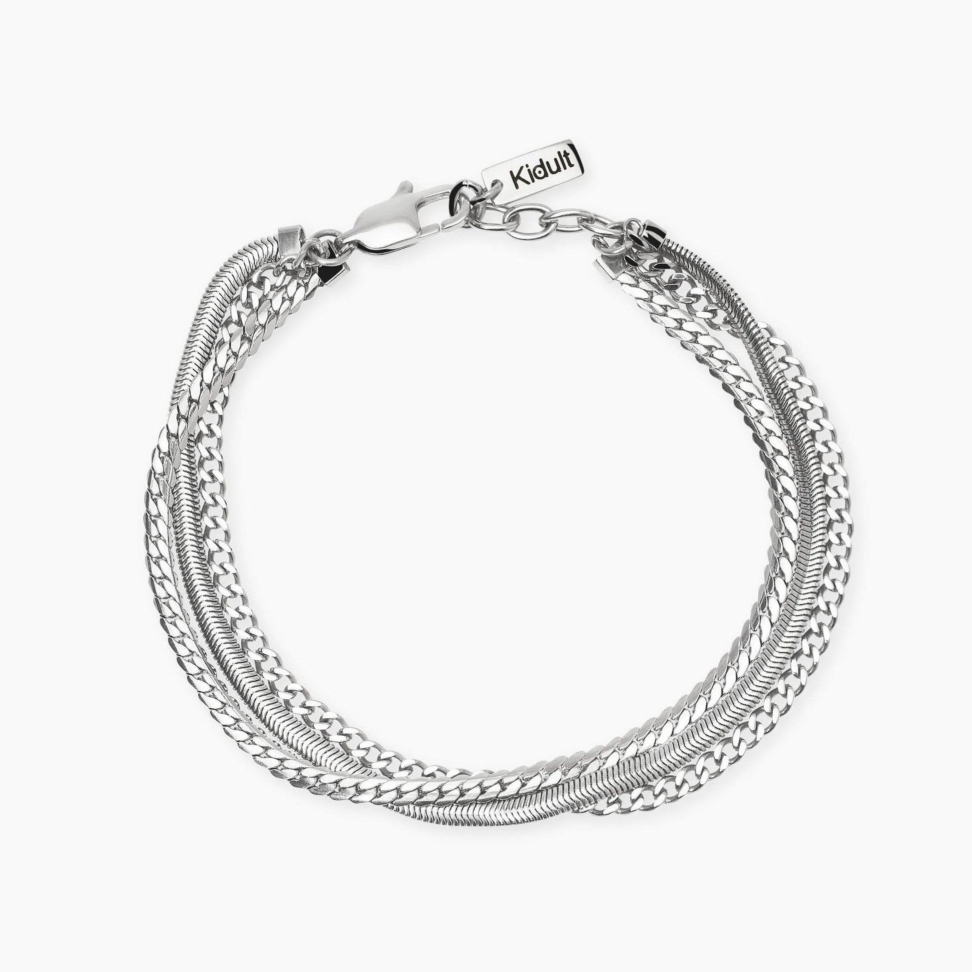 Bracciale regolabile in acciaio con catene snake e groumette.